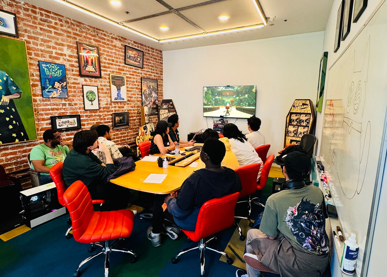 While at the Double Fine Productions studio, part of the Xbox Game Studios family, the students were given the chance to chat with Double Fine developers on the team, including studio head Tim Schafer, environment artist Will Koehler, senior designer Lauren Scott, principal designer Seth Marinello, senior animator Miyuki Richardson and QA game lead Ernest J Walker, among numerous others.